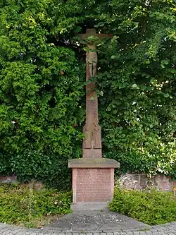 CHRISTO DEM GECREVTZIGTEN VND DEN H.H. MARTYREN STEPHANO VND SEBASTIANO ZV EHREN HAT DER EHRSAME DIETHER DIBPOLT DES GERICHTS ZV ERLENBACH DIESES CRVCIFIX AVFRICHTEN LASSEN ANNO DOMINI 1678