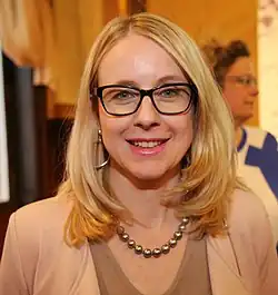 Margarete Schramböck war von 18. Dezember 2017 bis 7. Jänner 2018 Bundesministerin für Wissenschaft, Forschung und Wirtschaft, ab dem 8. Jänner 2018 war sie Bundesministerin für Digitalisierung und Wirtschaftsstandort in der Bundesregierung Kurz I. Sie wurde zunächst als Parteilose von der ÖVP für dieses Amt nominiert. Seit der Angelobung zur Ministerin ist Schramböck Mitglied des Landesparteivorstandes der Tiroler Volkspartei.[18]