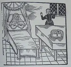 Auch außerhalb der Kirche wurde nun eine Darstellung der Geschehnisse gezeigt: Im Gasthaus Het wapen van de Prins van Oranje war ein Bild von Petrus Kaerius zu sehen, das das Kindbett der Margarete von Henneberg zeigte. Dieses Gemälde wurde im 17. Jahrhundert auch in Drucken verbreitet und befindet sich heute in der Abteikirche von Loosduinen. Es zeigt an der linken Wand eine Art Kommode, auf der eine Schüssel mit den vielen Kindern steht, dahinter einen rauchenden offenen Kamin, vor dem Geburtshelferinnen mit heißem Wasser und Leintüchern beschäftigt sind, und rechts das Bett der Kindbetterin.