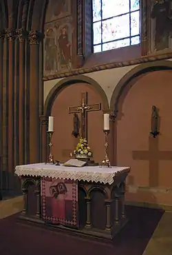 Außerdem beherbergt die Kirche bemerkenswerte Holzfiguren. Die um 1250 entstandene Skulptur des Heiligen Johannes ist nur 68 cm groß. Der Körper ist gerade aufgerichtet, der Kopf leicht geneigt. Die Kleidung liegt eng an und lässt die Figur sehr schmal erscheinen. Die Arme halten ein Buch, das Symbol des Evangelisten Johannes. Auf der anderen Seite des Altars steht das Pendant: die Heilige Margareta.
