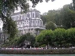 Die Basilika, in Abgrenzung zur Rosenkranz-Basilika auch „Obere Basilika“ genannt, wurde zwischen 1866 und 1871 über der Krypta errichtet. Ihre Konsekration erfolgte 1876 durch Monsignore Pichenot, den damaligen Bischof von Tarbes und späteren Erzbischof von Chambéry.[1] Die Kirche wurde über dem Felsen der „Mariengrotte von Massabielle“ nach den Plänen des Architekten Hippolyte Durand erbaut.