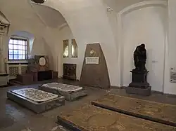 Seit 1723 diente die Mariä-Verkündigungs-Kirche Mitgliedern der Zarenfamilie und Angehörigen des russischen Adels, Militärs, Politikern und Hofdamen als Begräbnisstätte.[2] 1723 fand dort Zarin Praskowja Fjodorowna Saltykowa, Gemahlin von Zar Iwan V. als erste Person ihre letzte Ruhestätte. Später wurden die Gebeine weiterer Familienmitglieder der Romanows in die Kirche überführt, jedoch als dynastische Grablege die Peter-und-Paul-Kathedrale genutzt.[3] 1762 ordnete Zarin Katharina II. dort die Beisetzung von Zar Peter III. an. Zar Paul I. ließ seinen Vater 1796 exhumieren und in der Peter-und-Paul-Kathedrale beisetzen. In der Ära der Sowjetunion wurden die Räume der Mariä-Verkündigungs-Kirche den Arbeiter- und Soldatenräten zur Verfügung gestellt. 1935 ließ Josef Stalin das Kloster schließen, das erst 1946 in Kirchenbesitz zurückging. Die Mariä-Verkündigungs-Kirche beherbergte während der Sowjetzeit das städtische Skulpturenmuseum. Im Jahre 1957 wurde das Kloster wieder geweiht und ist seitdem in kirchlicher Benutzung, aber trotzdem öffentlich zugänglich.[4]