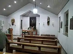 Als Hochaltar dient ein Gemälde der Kreuzigung. An der Stelle von Seitenaltären sind Figuren des Heiligen Johannes Nepomuk (?) und der Muttergottes mit Kind vorhanden.