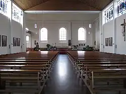 In der Apsis der alten Kirche steht ein 1930[6] angeschaffter Taufstein aus Carrara-Marmor und davor eine ehemalige Kommunionbank von 1894 mit symbolhaftem Bildprogramm.[5]