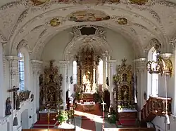 Um 1710 wurde das Deckenfresko im Chor geschaffen. Das östliche Fresko stellt den Tod Marias, das westliche den Tod des heiligen Josef dar. Die Fresken im Langhaus und an der Nordwand des Chores stammen von 1931 und wurden von Joseph Hengge geschaffen.