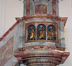 Die Herstellung des Kredenztisches im Chorraum aus marmoriertem Holz ist zwischen 1780 und 1790 anzusetzen. Der Tisch ist mit einem vergoldeten Lorbeerkranz geschmückt.
