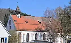 Das Kloster wurde vermutlich um 1240 gegründet. Aus dieser Zeit stammt wohl auch der Kirchenbau, der 1259 seine erste Erwähnung findet. Die Steinmetzzeichen am Chor werden auf Mitte 13. Jahrhundert datiert. Von 1326 sind dann die ersten Messstiftungen in dieser Kirche bekannt. 1289, 1449, 1525 und 1546 wurde das Kloster und die Kirche durch Angriffe und Brandschatzungen schwer beschädigt. 1550/51 kam es dann zu umfangreichen Auf- und Neubauten. Der Dachstuhl und die Fensterleibungen wurden zu dieser Zeit erneuert. 1554 wurde in die Kirche eine Kassettendecke eingezogen. Mitte des 18. Jahrhunderts kam es zur Barockisierung der Kirche, bei der wahrscheinlich auch die Sakristei am Chorscheitel angebaut wurde. Der Hochaltar und die Seitenaltäre wurden um 1760 erstellt. Nachdem 1803 das Kloster im Zuge der Säkularisation aufgelöst worden war, wurde 1808 das Kloster zum Zuchthaus umfunktioniert. 1825 kam es dann zu den größten baulichen Veränderungen in der Geschichte dieser Kirche bis heute. Unter der Empore wurden 8 Bänke des Laiengestühls abgebaut und dieser Teil von der Kirche abgetrennt und als Wachstube eingerichtet. Außerdem wurde über der Empore eine neue Decke abgehängt, worüber ein Gefangenenspeisesaal und darüber ein Lagerraum errichtet wurde. Dazu wurde eine neue Empore errichtet und die Kanzel versetzt. 1839 wurde die gesamte Westfassade abgebrochen und neu errichtet. 1860 wurde wegen des Einbaus einer neuen Orgel die Orgelempore vergrößert, weshalb auch die Kanzel abermals versetzt wurde. 1909 wurde die 1825 eingezogene Zwischendecke wieder ausgebaut und die Kassettendecke repariert, die 1956 mit dem Muster von 1554 jedoch mit billigem Sperrholz saniert wurde.