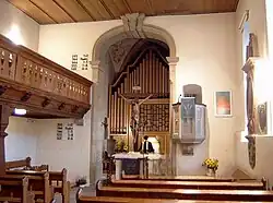 Die erste belegte Orgel wurde 1727 angeschafft. Eine weitere, 1895 gebaute Orgel der Firma Gebr. Link aus Giengen a. d. Brenz, war lange in Gebrauch, bevor sie durch eine neue Orgel ersetzt wurde. Die heutige zweimanualige Orgel mit 14 Registern wurde 1965 von der Giengener Orgelmanufaktur Gebr. Link nach Plänen von Helmut Bornefeld gebaut, 1974 erweitert und 2012 überholt.[2] Der Orgelprospekt besteht aus Holzpfeifen, die durch Tönung und Fräsung eine lebendige Wirkung erzeugen.