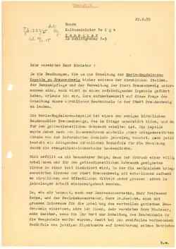 - ↑ Antwortschreiben von Helmut Bojunga, Staatssekretär im Kultusministerium des Landes Niedersachsen an Landesbischof Martin Erdmann vom 23. Juli 1955, Signatur: LAW Ortsakte Braunschweig allgemein 44, S. 2–3.