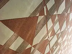 Die Frontfassade des Kirchenschiffes und die der Wilhelmshöher Straße zugewandte Seitenwand sind mit einer vollflächigen zweifarbigen Wandmalerei ausgestattet, die an ein Mosaik erinnert. Es stellt Figuren, Gerade und Diagonale dar, die sich zu christlichem Kreuz und Kelch zusammenfügen.