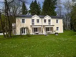 Schräg links vor dem Hauptgebäude liegt die 1987 errichtete „Belle Etage“ und ganz links eine kleine Villa, die von den derzeitigen Besitzern zeitweise bewohnt wird. Zu der Anlage zählt auch ein rechts des Hauptgebäudes liegender Pavillon, der einstmals ein beliebter Ort für Hochzeiten war. Zum großen Park mit seinem alten Baumbestand zählen auch verschiedene größere Fischteiche. Im Park finden sich alte Skulpturen, kleine Wasserläufe und -teiche, wobei die meisten Steinausführungen aus Konglomerat bestehen.