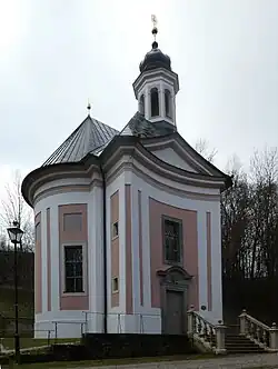 Das Gebäude wurde 1716/17 nach einem Plan des Sebastian Stumpfegger anstelle eines Vorgängers von 1624 errichtet, nachdem die Anzahl der Wallfahrer immer größer geworden war. Es ist ein nach Süden gerichteter Zentralbau mit drei halbrunden Konchen und nach innen gewölbter Fassade. Außen sind die Wände durch Lisenen, innen durch Pilaster gegliedert. Die Konchen sind mit Kuppeln überspannt.