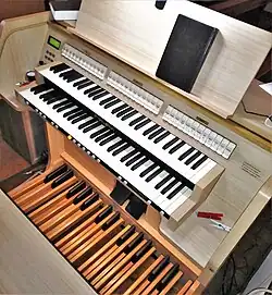 • Spielhilfen: 48 Setzerkombinationen, MIDI für jede Klaviatur, 3 Intonationen (Barock, Romantisch, Symphonisch), 6 historische Stimmungen