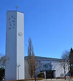 Die polygone Kirche mit dem 31 Meter hohen Campanile wurde 1959/60 von Philipp Olkus erbaut. Sie wurde für 500 Gottesdienstbesucher konzipiert. Die Sitzplätze verteilen sich auf drei Blöcke, der Boden weist ein Gefälle zum Chorraum hin auf. Nachdem 1974 Reparaturarbeiten notwendig wurden, nahm der Bildhauer Alfred Appenzeller eine Neugestaltung des Innenraumes vor. Die Oesterle-Orgel auf der Empore stammt von 1982. 1998 kam ein neues Beleuchtungskonzept hinzu.