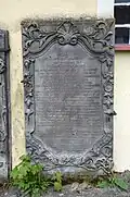 Die Kirche enthält mehrere Grabtafeln und Epitaphien aus dem 17. und 18. Jahrhundert, die an der Außenseite der Kirche eingemauert sind. Bemerkenswert sind sie, weil sie nicht nur die Geburts- und Todesdaten enthalten, sondern auch Angaben über das Leben des jeweiligen Verstorbenen. In der Außenmauer der Kirche befindet sich auch ein Mausoleum, das allerdings nicht mehr zugeordnet werden kann.