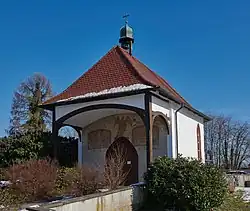 Ein Drittel des kleinen rechteckigen Gebäudes nimmt die offene Vorhalle ein, die aus drei Korbbögen gebildet wird. Den Abschluss bildet der nicht eingezogene polygonale Chor. Der Eingang ist ebenso spitzbogig wie im Osten zwei seitliche Fenster. Das Satteldach ist über der Vorhalle und über dem Chor abgewalmt. Auf der Westseite befindet sich auf zwei Pfosten ein Dachreiter mit einer Zwiebelhaube.