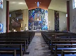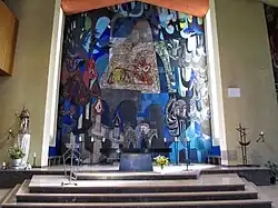 Sehenswert im Inneren der Kirche ist das zwölf Meter hohe und über einhundert Quadratmeter große Mosaik hinter dem Altar. Entworfen wurde es von Helena Trossen (Essen), während Pfarrer Hubert Sedlmair und Helfer der Pfarrgemeinde für die Ausführung im Dezember 1968 verantwortlich zeichneten.[4]