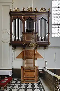 Die Hauptorgel auf der Empore wurde von der Firma Rieger aus Schwarzach/Vorarlberg gebaut und am 4. Dezember 1983 geweiht. Das Werk verfügt über 25 Register, verteilt auf zwei Manuale und Pedal.[13]