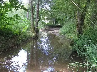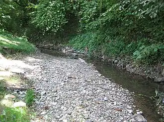 Der Mariatroster Bach ist auf Höhe Purbergstraße in weitgehend naturnahem Zustand | ||