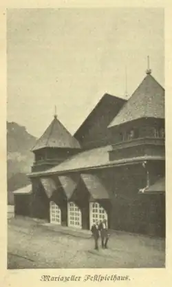 1923 gründeten der Leiter der Christlich-Sozialen Kunststelle, Hans Brečka und Burgtheaterdirektor Franz Herterich die Mariazeller Festspiele. In Anknüpfung an die Salzburger Festspiele, die 1920 gegründet worden waren, wollten die Mariazeller auf betont katholische und alpenländische Traditionen anspielen.[1] Ein neues, mit moderner Technik ausgestattetes Festspielhaus ist errichtet worden.[2] Nach drei Jahren bzw. Festspielzeiten erwiesen sich die Mariazeller Festspiele „für die Veranstalter als Fehlspekulation“.[3]