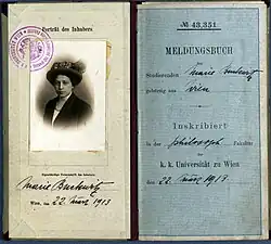 Sie studierte an der philosophischen Faktultät der Universität Wien unter anderem bei Wolfgang Josef Pauli, dem Vater des Nobelpreisträgers Wolfgang Pauli. Doktorvater ihrer im Herbst 1917 abgegebenen Dissertation war der Chemiker Rudolf Wegscheider.
