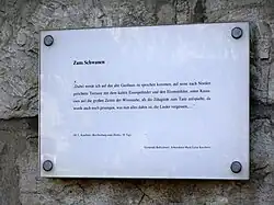 Tafel mit einem Zitat aus „Beschreibung eines Dorfes“ von Marie Luise Kaschnitz am ehemaligen Haus Zum Schwanen in Bollschweil