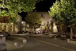 Sommerabend in Grignan (2011) vor dem Brunnen mit der Statue der Marquise de Sévigné