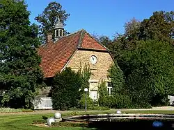 Die Kapelle ist äußerlich nur durch einen Dachreiter mit Glocke und durch ein Chronogramm-Relief über der Tür kenntlich gemacht. Die Inschrift lautet