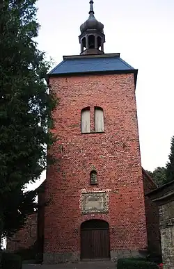 Es handelt sich um einen gotischen Bau von ca. 40 m Länge und 20 m Breite aus rotem Backstein auf einem Fundament aus behauenen Feldsteinen, mit Spitzbogenfenstern und einem mit Dachziegeln gedeckten Satteldach. Der quadratische Turm hat ein auf Dachfirsthöhe ansetzendes, mit Schiefer gedecktes Dach, das eine mit einer Zwiebelhaube gekrönte Dachlaterne hat. Über dem Portal auf der Westseite des Turmes ist eine beschriftete Sandsteinplatte aus dem Rokoko eingelassen. Die einzige Uhr des Turmes weist nach Osten.