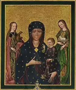 - Das Gemälde der Beuthener Madonna, ein Temperagemälde auf einer Lindenholztafel. Das Gemälde entstand um 1430 und zeigte ursprünglich nur das Bildnis Maria mit dem Jesuskind auf goldenem Hintergrund. Es befand sich einst im Hauptaltar und wurde nach dem Stadtbrand von 1515 erneuert und um Bildnisse der hll. Katharina von Alexandrien und Agnes von Rom ergänzt und der Hintergrund ausgestaltet. Die Ikone verblieb bis 1863 in der Marienkirche und wurde dann der neuen Josefkapelle in Schomberg übergeben. Von 1970 bis 1973 wurden an dem Gemälde konservatorische Arbeiten ausgeführt; 1973 wurde sie wieder in die Marienkirche gebracht.[1]