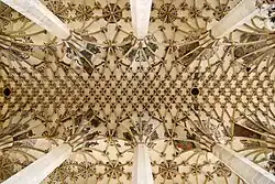 Das Gewölbe der Pirnaer Hallenkirche mit ihren drei gleich hohen Schiffen wird von acht schlanken achteckigen Pfeilern getragen. Es zeigt in seinem Ostteil waghalsige und verspielte Elemente wie die in den Raum ragende Spiralrippen (Schleifenrippen), Hobelspanrippen und zwei Astrippen. Über dem Chor befindet sich das kunstvolle Fischblasen-Gewölbe. In der Apsis unmittelbar unter den Astrippen befindet sich ein als „Wilder Mann und Wilde Frau“ bezeichnetes Menschenpaar aus Sandstein. Vielleicht wurden diese Eigenheiten schon um 1520 von dem damaligen Architekten Markus Ribisch entworfen und später dann ergänzt und eingebaut. In den von seinem Vorgänger eingewölbten drei westlichen Jochen finden sie sich noch nicht. Es ist aber auch möglich, dass einzelne Besonderheiten wie die Astrippen und ihre Figuren erst in den frühen 1540er Jahren angefertigt wurden.