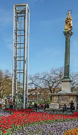 Der aus Anlass des Grazer Kulturhauptstadtjahrs 2003 wenig östlich der Mariensäule am Eisernen Tor in der Grazer Innenstadt errichtete 18 Meter hohe Seilaufzug mit verglastem Schacht und Glaskabine sollte es dem Besucher gegen Bezahlung eines kleinen Obolus (1 Euro) ermöglichen, der vergoldeten Madonna „auf Augenhöhe“ zu begegnen.[1] Es bot sich ein erhöhter Blick in die Herrengasse. Der gläserne Lift sollte ein Symbol für eine egalitäre, demokratische Gesellschaft darstellen. Abseits der weltlichen und religiösen Deutungen der Mariensäule sollten sich die Bürger und Bürgerinnen selbst ein Bild von der Stadt aus der Perspektive der Heiligen machen. Der Künstler sah dadurch eine demokratische Erhöhung gegeben, die die Herrschenden abschaffte, die über dem Volk stünden.[2]