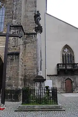 Die auf einem klassisch profilierten rechteckigen Sockel stehende glatte Säule ist mit einem korinthischen Kapitell versehen, auf der eine Marienstatue mit betenden Händen steht. Diese ist mit einem gefältelten Mantel sowie einem Sternenkranz gestaltet.