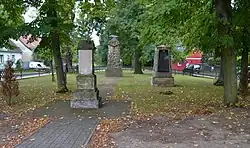 - Denkmal für die Gefallenen von 1870/1871, Denkmäler für die Gefallenen aus dem Ersten und Zweiten Weltkrieg sowie Gedenkstein für acht Bürger, die in den Internierungslagern 1945–1950 umkamen