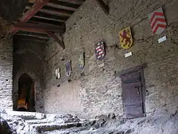 • Aufgang durch Fuchstor und Schartentor mit Gusserker, über die Reitertreppe vorbei an den Wappen aller Burgbesitzer von den Eppsteinern im 13. Jahrhundert bis zur Deutschen Burgenvereinigung heute