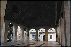 Das rechteckige Gebäude ist an allen vier Seiten durch hohe Rundbogenarkaden geöffnet. Im Inneren gibt es keine weiteren Stützen für die Dachkonstruktion.