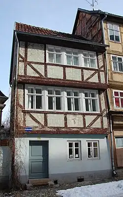 Das dreigeschossige Fachwerkhaus entstand im 17. Jahrhundert. Sein Fachwerk weist Überblattungen und Eckstreben auf, die Gefache des ersten Obergeschosses sind mit verschieden gestalteten Zierausmauerungen versehen. Im 19./20. Jahrhundert wurde das Erdgeschoss in massiver Bauweise erneuert.