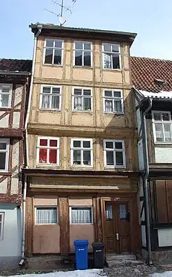Das viergeschossige Fachwerkhaus entstand im Jahr 1760. Auf der Nordseite besteht ein Zwerchhaus. Im 19. Jahrhundert wurde die südliche Fassade umgestaltet. Sowohl auf der Nord- als auch auf der Südseite wurden Anfang des 20. Jahrhunderts Ladeneinbauten im Stil des Neorokoko vorgenommen.