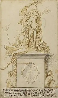 Carl Philipp war 1716 Kurfürst von der Pfalz geworden. Er plante die Ausgestaltung des Heidelberger Schlossgartens und beauftragte Peter van den Branden, einen Schüler von Gabriel Grupello, mit der Skulptur. Die Figuren symbolisierten die vier Elemente, ein Wassergott für das Wasser, eine weibliche Gestalt für die Erde und der Götterbote Merkur für die Luft, in der Hand die Sonne haltend für das Feuer. 1719 war das Denkmal vollendet doch bereits im Jahr darauf verlegte Carl Philipp die Residenz von Heidelberg nach Mannheim.