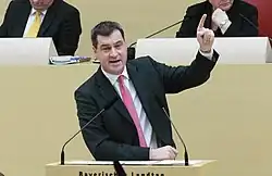 Markus Thomas Theodor Söder (* 5. Januar 1967 in Nürnberg) ist ein deutscher Politiker (CSU). Er ist seit März 2018 Ministerpräsident des Freistaates Bayern und seit Januar 2019 Parteivorsitzender der CSU. Seit 1994 gehört Söder dem Bayerischen Landtag an.