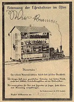 Im Jahr 1941 projektierte Müller-Hillebrand einen „Filmzug“, bestehend aus zwei französischen Eisenbahnwagen, zur Betreuung der „Osteisenbahner“ hinter der Front in besetzten Gebieten. Im Februar und Juli 1942 entstanden auf russischem Gebiet Dokumentaraufnahmen vom Eisenbahnbetrieb. Ein damals entstandener Film Reichsbahn in Russland ist verschollen. 300 Fotos zum Thema „Die Reichsbahn im russischen Winter 1941/42“ wurden dem Verkehrsmuseum Nürnberg 2002 überlassen und in die Dauer-Ausstellung „Im Dienst von Demokratie und Diktatur. Die Reichsbahn 1920–1945“[2][3] integriert.