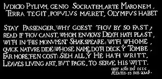 - ↑ Roberta Ballantine: The Shakespeare Epitaphs. geocities.com ( vom 25. Januar 2008 im Internet Archive)