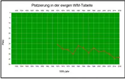 | 23 WM-Spiele 5 Siege 7 Unentschieden 11 Niederlagen 20:27 Tore | |