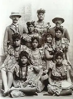 Die zweite Samoa-Völkerschau wurde von Te'o Tuvale (1855–1919) angeführt. Tuvale kalkulierte nach der Gründung von Deutsch-Samoa als aufstrebender Häuptling, durch die Reise nach Deutschland Vertreter der neuen Kolonialmacht kennenzulernen. Die Brüder Marquardt hatten ihm die Verantwortung für die Durchführung der Schauen übertragen, um von vornherein Unruhe in der Gruppe zu vermeiden.[18] Zur Gruppe gehörten zehn Männer und etwa 20 Frauen.[19] Die Gruppe brach am 17. Januar 1900 in Samoa auf und war zunächst auf der Pariser Weltausstellung zu sehen. Im Deutschen Reich trat die Gruppe zuerst in Köln auf. Weitere Stationen waren Berlin, Hamburg, Breslau, Stuttgart, München, Zürich, wieder Köln, anschließend Hagen, München, Budapest, Dresden, Frankfurt am Main, Leipzig, Chemnitz, Halle, Posen und schließlich Königsberg.[20] Am 28. Juni 1900 ließ Kaiser Wilhelm II. die Völkerschau nach Kiel kommen.