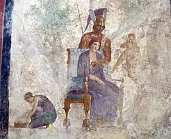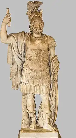 Wie Ares galt Mars als Gott des Krieges, aber gewisse Einzelheiten in seinem Kult deuten auch darauf, dass er als Agrargottheit mit dem Gedeihen der Vegetation verbunden wurde.[2] Priester des Mars in Rom war der Flamen Martialis; außerdem führten die Salii Palatini Kulthandlungen für ihn durch. Beim Fest des Mars (wie auch des Quirinus) zog die Tanzpriesterschaft in alter Kriegsbekleidung singend und tanzend durch Rom. Ursprünglich wurde Mars außerhalb der Stadt auf dem nach ihm benannten Marsfeld (Campus Martius) verehrt, bis Augustus einen Tempel des Mars Ultor (der „Rächer“, nämlich an den Mördern Caesars) auf seinem Forum errichten ließ.