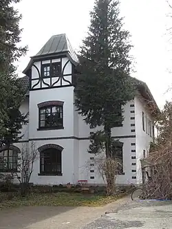 Das Haus im Stil der Neurenaissance wurde vom Büro August Exter entworfen. Die Villa mit einem Turmerker mit dekorativer Fachwerkauflage gehört zur Erstbebauung der Straße. Am Hinteren Teil des Hauses befand sich etwas schmaler anschließend eine Werkstatt in der Galvanoplastiken hergestellt wurden. In den Jahren 1982 bis 1984 wurde die Werkstatt abgerissen und das Haus in der Gesamtbreite nach hinten leicht verlängert und geschlossen.