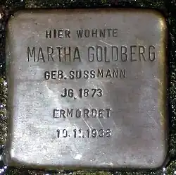 - Martha Goldberg, geb. Sussmann, * 1873 beim Projekt „Stolpersteine Bremen“