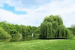 Im Jahr 1971 wurde im Park in der Tongrube einer ehemals dort ansässigen Ziegelei ein etwa 4.800 m² großer, naturnah gestalteter Teich angelegt. Das zwischen 50 und 80 cm flache Stillgewässer wird von Grundwasser gespeist. An seinem Ufer stehen unter anderem ein Röhricht-Gürtel sowie Weidenbäume (Salix).[2] Zu den weiteren Einrichtungen im Park zählen ein Abenteuerspielplatz, ein Streetball- und Basketballfeld, Bolzplatz, Liegewiese, Spazierwege sowie eine Hundewiese.[1]