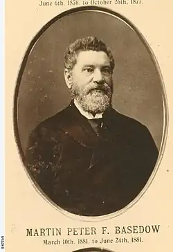 - ↑ Ministers controlling education in SA: Martin Peter F. Basedow {B 6725/8}, auf collections.slsa.sa.gov.au. Abgerufen am 2. November 2017