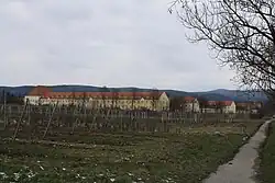 - ↑ Rettung aus der Wirtschaftsnot: Riesige Grundkäufe für den Kasernenbau. In: Badener Zeitung, Nr. 34/1938 (LIX. Jahrgang), 27. April 1938, S. 3. (online bei ANNO).